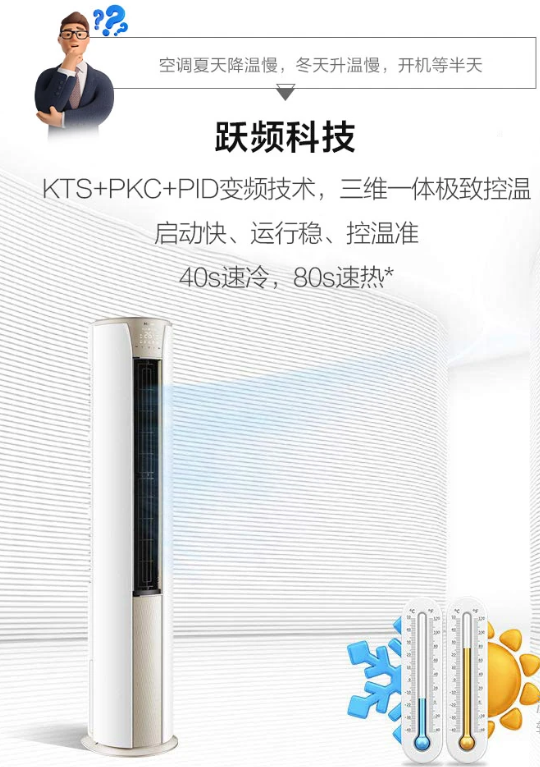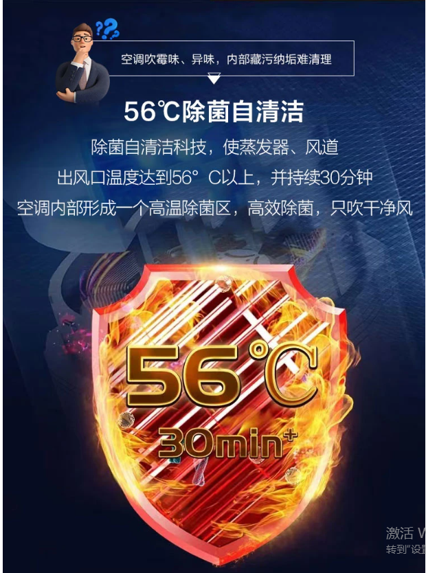 空調(diào)夏天降溫慢,冬天升溫慢,開機(jī)等半天,這款靜悅空調(diào)采用KST+PKC+PID變頻技術(shù),三維一體極致控溫,啟動(dòng)快、運(yùn)行穩(wěn)、控溫準(zhǔn),40S速冷,80S速熱。搭配強(qiáng)勁壓縮機(jī),強(qiáng)勁動(dòng)力,速冷速熱。還帶有56℃除菌自清潔功能,出風(fēng)口溫度達(dá)到56℃以上,并持續(xù)30分鐘,空調(diào)內(nèi)部形成一個(gè)高溫除菌區(qū),高效除菌,只吹干凈風(fēng)。次空調(diào)采用上下分段式豎百葉,可根據(jù)用戶需求獨(dú)立控制,采用專利導(dǎo)風(fēng)板應(yīng)用高爾夫球面導(dǎo)流科技,20個(gè)大波浪導(dǎo)板,1800個(gè)高爾夫球面,分散氣流,送風(fēng)更舒適。?